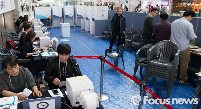 (인천공항=포커스뉴스) 제20대 국회의원 선거를 6일 앞둔 7일 오후 인천국제공항 출국장에서 인천 선거관리위원회 관계자들이 사전투표소를 설치하고 있다.
