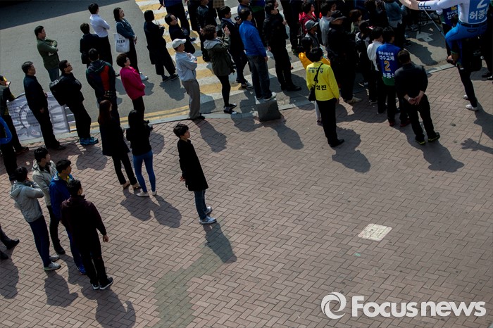(인천=포커스뉴스) 7일 오후 인천광역시 지하철1호선 주안역 남광장에서 열린 더불어민주당 인천 지역 합동유장을 찾은 유권자들이 문재인 더불어민주당 전 대표의 연설을 경청 하고 있다.