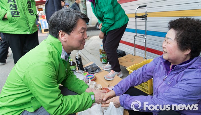 (서울=포커스뉴스) 7일 오후 서울 송파구 마천시장에서 안철수 국민의당 상임공동대표가 차성환 국민의당 송파구병 후보 지원유세를 하고 있다.