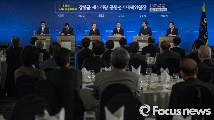 (서울=포커스뉴스) 7일 오후 서울 종로구 세종문화회관에서 열린 한국방송기자클럽 초청토론회에 참석한 강봉균 새누리당 공동선거대책위원장이 패널들과 토론을 하고 있다.