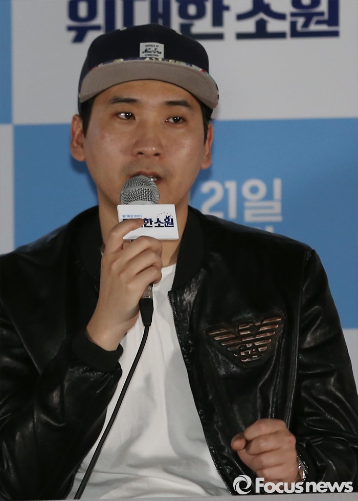 (서울=포커스뉴스) 7일 오후 서울 광진구 건대입구 롯데시네마에서 열린 영화 '위대한 소원' 언론시사회에 참석한 남대중 감독이 인사말을 하고 있다.