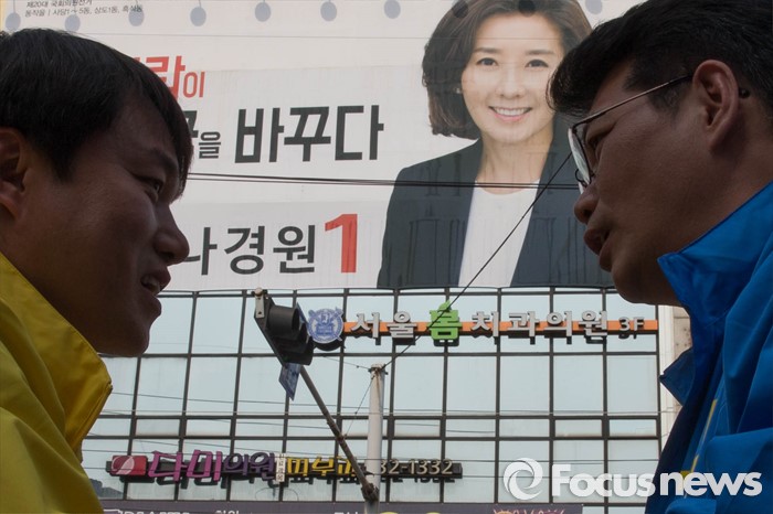 (서울=포커스뉴스) 20대 총선을 6일 앞둔 7일 오후 서울 동작구 남성역 골목시장 인근에서 허동준 더불어민주당 동작구을 후보와 김종철 정의당 후보가 이야기를 나누고 있다.