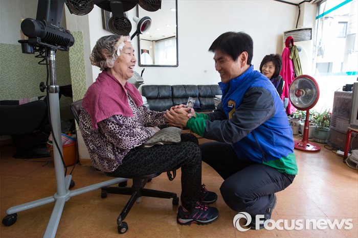 △ 20대 총선, 미용실에서 인사하는 이용선
