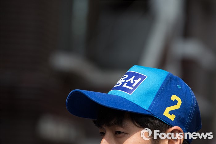 (서울=포커스뉴스) 더불어민주당의 한 선거운동원이 7일 오후 서울 양천구 신월동 신월시장에서 선거운동을 하고 있다.