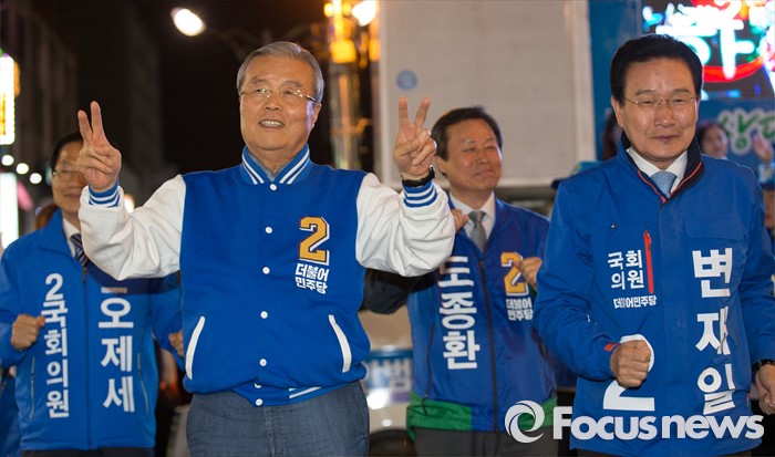 | △ 청주 더민주 후보 지지호소하는 김종인 |