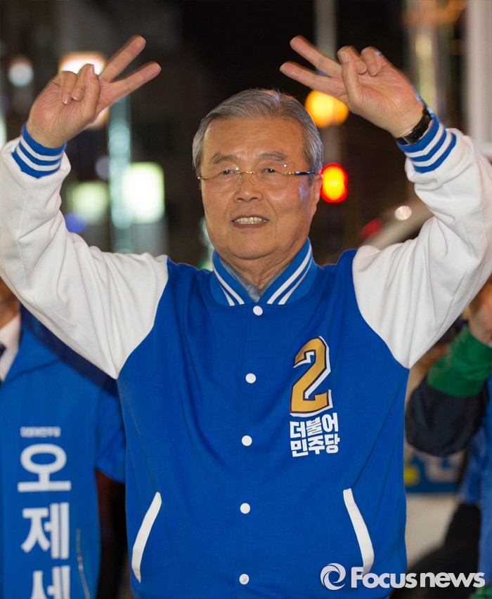 (청주=포커스뉴스) 김종민 더불어민주당 대표가 7일 오후 충북 청주 상당구 성안길에서 율동을 하며 청주시 후보에 대한 지지를 호소하고 있다.