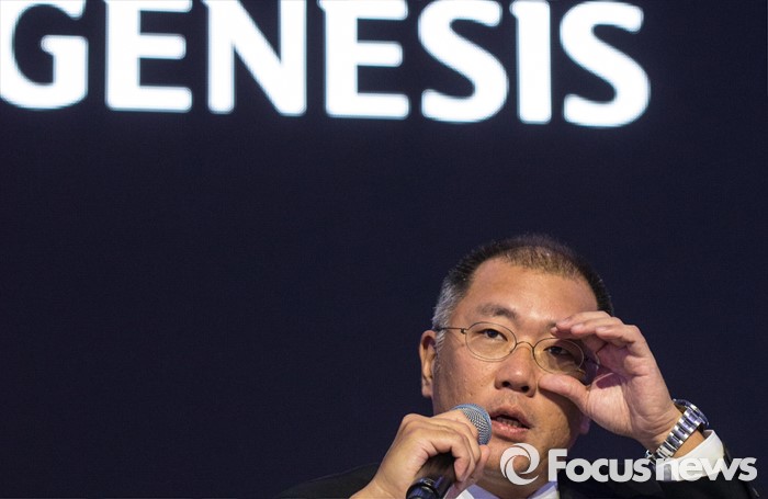 제네시스 EQ900는 지난해 11월 23일 사전계약을 시작한 후 최근까지 총 2만3000여대가 팔리며 흥행몰이중이다. EQ900은 올들어 3월까지 8210대 판매됐다.(서울=포커스뉴스) 서울 중구 을지로 동대문디자인플라자에서 정의선 현대자동차 부회장이 브랜드 '제네시스' 출범을 설명하고 있다.2016.03.09