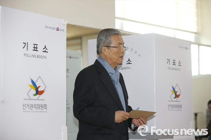 (인천=포커스뉴스) 김종인 더불어민주당 비대위 대표 겸 선대위원장이 8일 오전 인천 연수구 동춘3동주민센터에서 사전투표를 하고 있다.