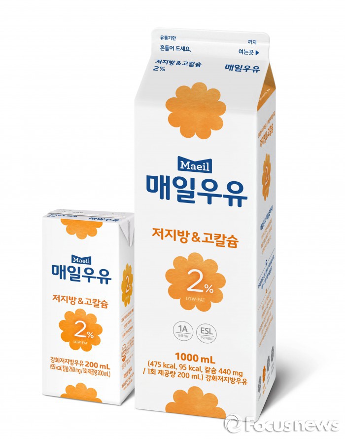 매일우유 ‘저지방&고칼슘2%’는 이런 소비자 욕구를 반영해 우유 본연의 고소한 맛을 살려 소비자의 입맛을 사로잡았다. 지방은 줄이고 칼슘은 두 배로 높여 우유 2잔만으로 하루 권장 칼슘섭취량 700~1000㎎(2005년 한국영양학회, 영양평가 기준 개발-한국인 영양섭취기준)을 채울 수 있을 정도로 영양이 가득해 맛과 영양을 모두 만족시키는 제품이다.