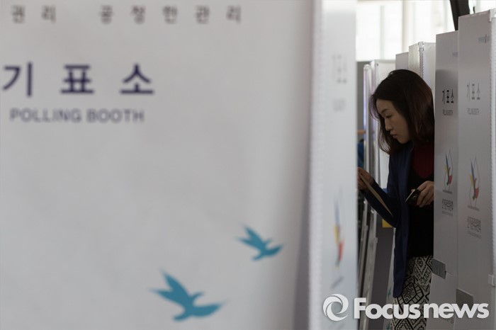 (서울=포커스뉴스) 4.13총선 사전투표 첫째날인 8일 오전 서울 용산구 서울역에 설치된 남영동 사전투표소에서 시민들이 투표를 하고 있다. 사전투표는 4.8~4.9일까지 진행된다.
