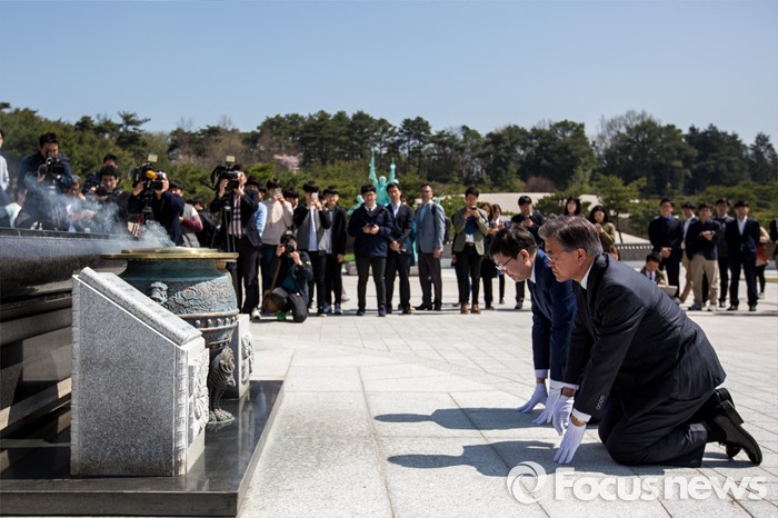 | △ 무릎 꿇은 문재인 더불어민주당 전 대표 |