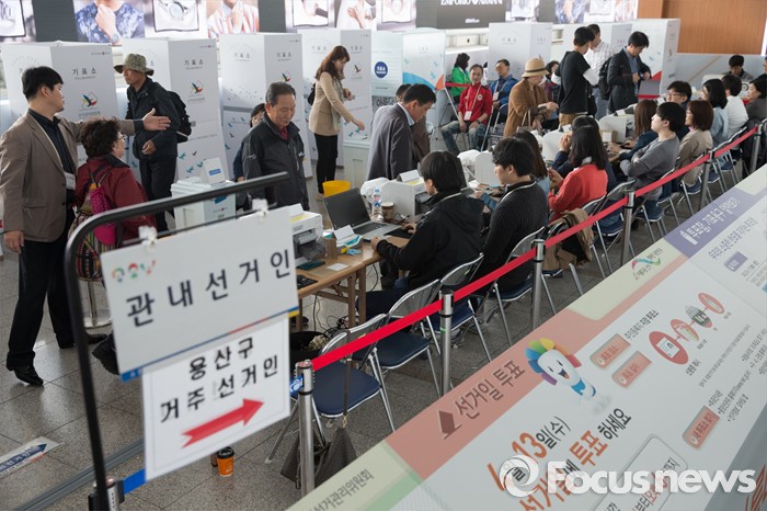 | △ 북적이는 서울역 사전투표소 |