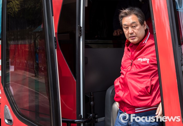 (부천=포커스뉴스) 8일 오후 경기 부천시 역곡역 인근에서 이사철 새누리당 부천원미을 후보 지원유세에 나선 김무성 대표가 버스에서 내리고 있다.