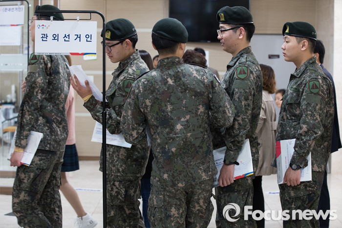 | △ 사전투표를 위해 기다리는 장병들 |