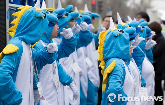 (김포=포커스뉴스) 8일 오후 경기 김포 장기사거리에서 정하영 김포시을 후보 선거운동원들이 지지를 호소하고 있다.