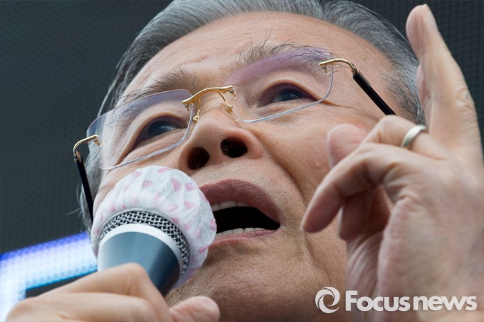 (김포=포커스뉴스) 김종인 더불어민주당 비대위 대표 겸 선대위원장이 8일 오후 경기 김포 장기사거리에서 김두관 김포시갑 후보와 정하영 김포시을 후보 합동지원유세를 하고 있다.