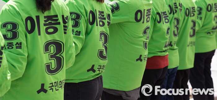(천안=포커스뉴스) 8일 오후 충남 천안 신부동 신세계백화점 앞에서 천안지역에 출마한 후보의 선거운동원이 지지를 호소하고 있다.