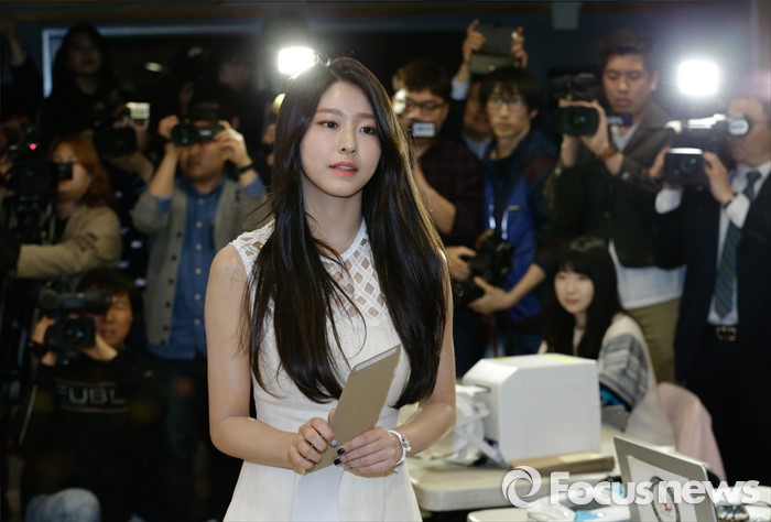 (서울=포커스뉴스) 20대 총선을 닷새 앞두고 사전투표가 이틀동안 실시되는 8일 오후 서울 강남구 청담동주민센터에 마련된 사전투표소에서 총선 홍보대사인 그룹 AOA의 설현이 이동하고 있다.
