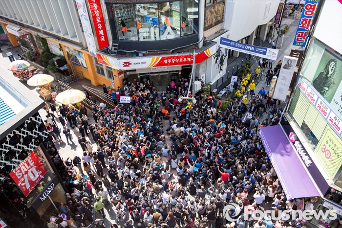| △ 문재인 전 대표 지지자로 가득한 광주 충장로 |