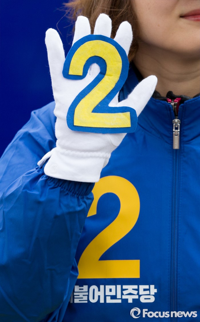 (파주=포커스뉴스) 김종인 더불어민주당 비대위 대표 겸 선대위원장이 8일 오후 경기 파주 금촌역 앞에서 박정 파주시을 후보 선거운동원들이 지지를 호소하고 있다.