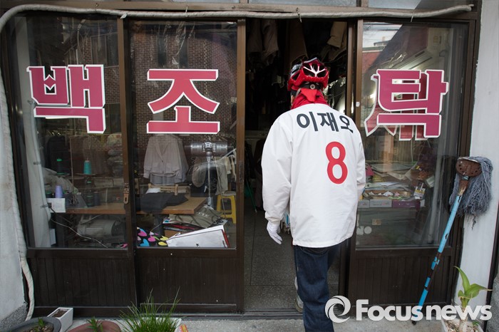 (서울=포커스뉴스) 이재오 무소속 은평을 후보가 8일 오후 서울 은평구 갈현동 일대에서 골목 유세를 하고 있다.
