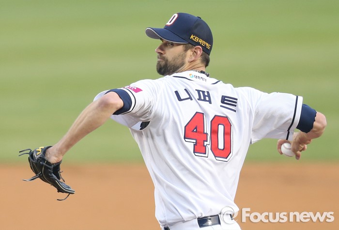 (서울=포커스뉴스) 8일 서울 잠실구장에서 열린 2016 프로야구 넥센-두산 경기에서 1회초 두산 선발투수 니퍼트가 투구하고 있다.