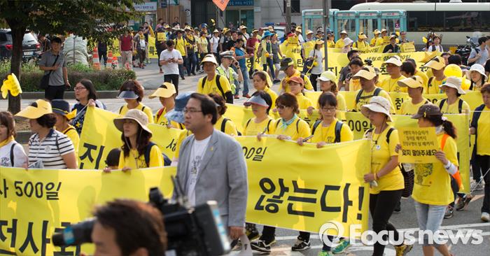 경찰은 "집회 및 행진으로 인한 교통정체가 예상되므로 가급적 대중교통을 이용해 주기를 바란다"고 말했다.지난해 8월 29일 오후 서울역광장에서 열린 '세월호 참사 500일 추모 국민대회'에 유가족을 비롯한 시민사회단체 회원들이 광화문 광장으로 행진을 하고 있다. 조종원 기자