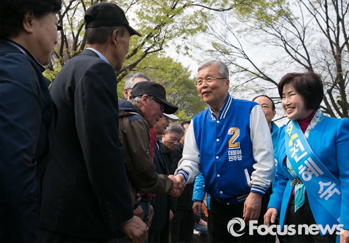 | △ 전혜숙 후보와 함께 지지 호소하는 김종인 |