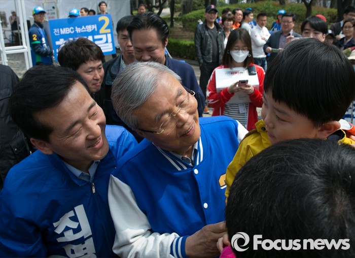 (서울=포커스뉴스) 김종인(가운데) 더불어민주당 비대위 대표 겸 선대위원장와 최명길(왼쪽) 송파을 후보가 10일 오전 서울 석촌호수 서호 인근 거리에서 선거유세를 마친 뒤 나들이객들과 인사하며 지지를 호소하고 있다.