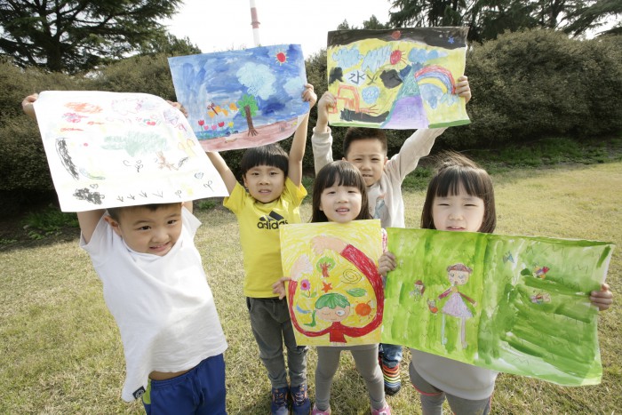또한 환경부장관상, 새만금지방환경청장상 등 총 326명에게 상장과 장학금을 수여한다. 입상자는 오는 29일 삼양사, 삼양화성, 휴비스 홈페이지를 통해 발표한다. 시상식은 내달 11일 전북대학교 삼성문화회관에서 진행될 예정이다.'자연사랑 파란마음 글그림 축제'에서 아이들이 자신의 그림을 자랑하고 있다.<사진=삼양그룹>