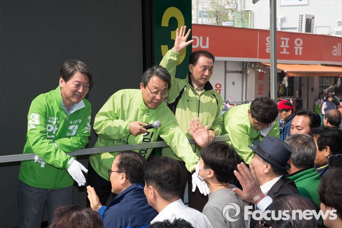 (서울=포커스뉴스) 20대 총선을 3일 앞둔 10일 오후 서울 관악구 관악프라자 인근에서 안철수 국민의당 공동대표가 김성식 관악구갑 후보 지원유세를 하고 있다.