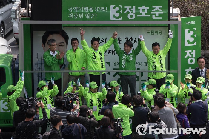 (서울=포커스뉴스) 20대 총선을 3일 앞둔 10일 오후 서울 성동구 옥수역 인근에서 안철수 국민의당 공동대표가 정호준 국민의당 중구성동을 후보 지원유세를 하고 있다.