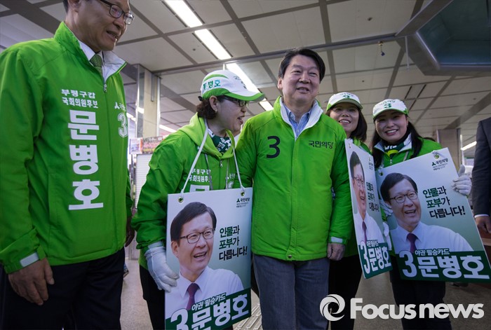 (인천=포커스뉴스) 안철수 국민의당 상임공동대표가 11일 아침 부평역에서 문병호 부평구갑 후보의 선거운동을 지원하고 있다.