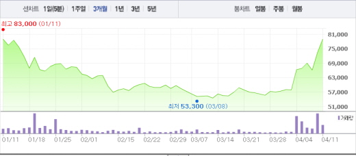 안랩은 11일 오전 9시 15분 현재 전일 대비 7.48%(5500원) 오른 7만9000원에 거래 중이다. 안랩의 주가는 7일을 제외하고 4거래일 연속 상승세를 이어왔다. 4월 1일 5만8000원이었던 주가와 비교했을 때 36.2% 상승한 수치다. 안철수 의원은 안랩의 창업주이자 안랩의 최대주주(18.6%)다.