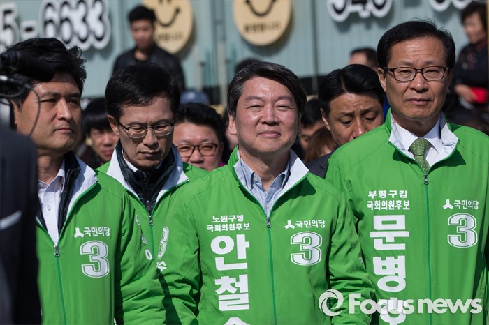 (인천=포커스뉴스) 안철수 국민의당 상임공동대표(가운데)가 문병호 부평구갑 후보와 함께 11일 오전 인천시 계양구 계양역 앞에서 계양구을 최원식 후보, 계양구갑 이수봉 후보 합동 지원 유세를 하고 있다.
