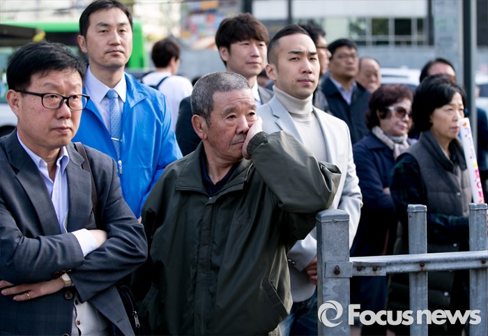 (서울=포커스뉴스) 20대 총선을 이틀 앞둔 11일 오전 서울 지하철 수서역 인근 거리에서 시민 및 지지자들이 김종인 더불어민주당 비대위 대표와 전현희 강남을 후보의 선거유세를 지켜보고 있다.