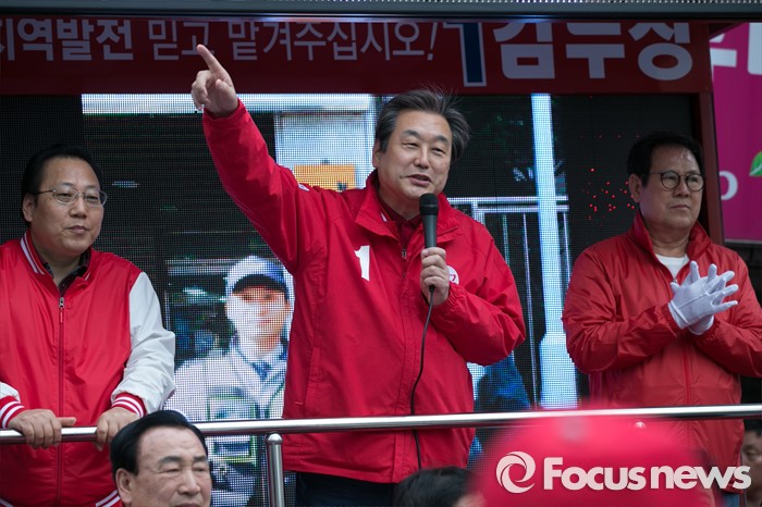 (부산=포커스뉴스) 제20대 총선에서 부산 중구영도에 출마한 김무성 새누리당 대표가 11일 오후 부산 중구 보수동 책방골목 앞에서 유세를 하고 있다.