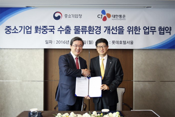CJ대한통운은 11일 서울 중구 소공동 롯데호텔에서 중소기업청(이하 중기청)과 '중소기업 대(對) 중국 수출 물류환경 개선을 위한 업무협약(MOU)'을 체결했다.