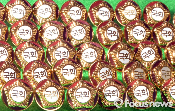 (서울=포커스뉴스) 4.13총선을 이틀 앞둔 11일 오후 서울 여의도 국회에서 20대 국회의원 당선자들이 착용할 배지가 공개되고 있다.