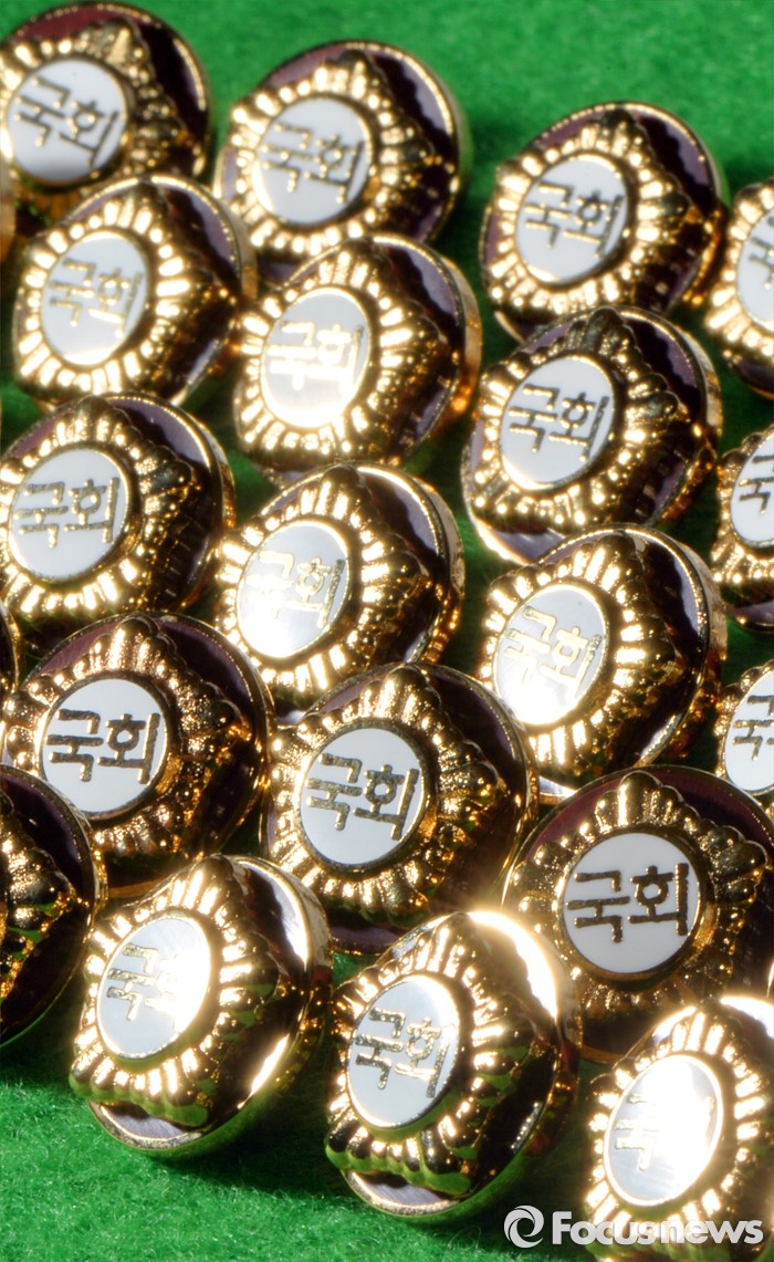 (서울=포커스뉴스) 4.13총선을 이틀 앞둔 11일 오후 서울 여의도 국회에서 20대 국회의원 당선자들이 착용할 배지가 공개되고 있다.
