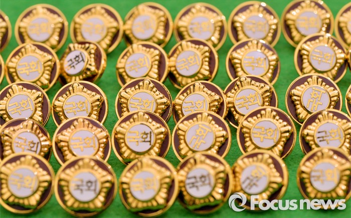 (서울=포커스뉴스) 4.13총선을 이틀 앞둔 11일 오후 서울 여의도 국회에서 20대 국회의원 당선자들이 착용할 배지가 공개되고 있다.