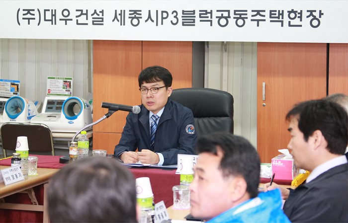 (세종=포커스뉴스) 고영선 고용노동부 차관이 11일 오후 세종시 아파트건설현장을 방문, 건설 근로자들의 안전관리실태를 점검, 건설현장 관계자들로부터 애로사항을 청취하고 있다. <사진제공=고용노동부>