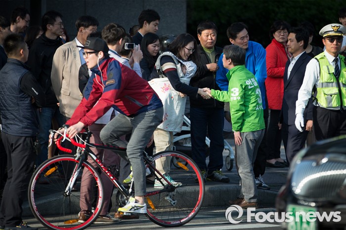 (서울=포커스뉴스) 안철수 국민의당 상임공동대표가 11일 오후 서울 관악구 롯데백화점 앞에서 김성식 관악갑 후보 지원 유세를 하고 있다.