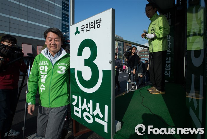 (서울=포커스뉴스) 안철수 국민의당 상임공동대표가 11일 오후 서울 관악구 롯데백화점 앞에서 김성식 관악갑 후보 지원 유세를 하고 있다.