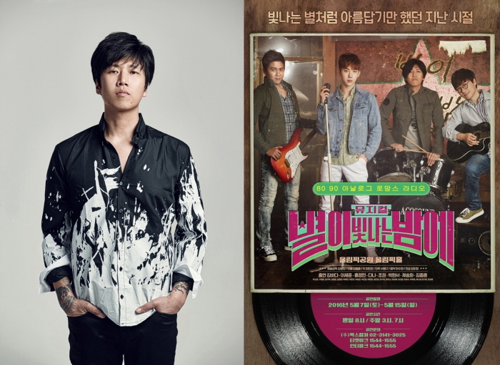 김바다는 1996년 시나위의 5대 보컬로 활동했으며, 그가 참여한 6집 '은퇴선언'은 지금도 한국형 얼터너티브 록의 진수로 평가받고 있다. 또 KBS '불후의 명곡'에 출연해 '마리아', '비와 당신의 이야기'로 우승하며 저력을 과시했고, 매년 록 페스티벌에서 끊임없는 러브콜을 받는 록계의 스타다.로커 김바다가 오는 5월 5일부터 17일까지 올림픽공원 내 올림픽홀에서 열리는 뮤지컬 '별이 빛나는 밤에'에서 인기 음악다방 DJ 김버드 역을 맡아 첫 뮤지컬에 도전한다. <사진제공=에버모어 뮤직>