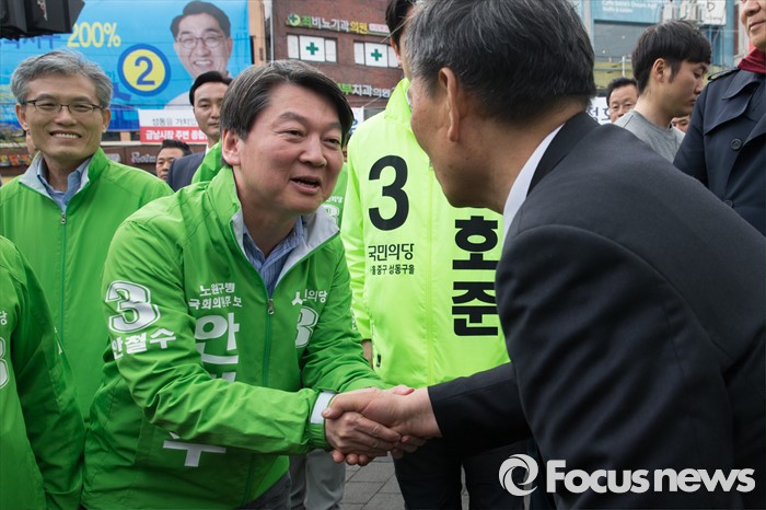 (서울=포커스뉴스) 안철수 국민의당 상임공동대표가 12일 오전 서울 성동구 금장시장 앞에서 서경선 중구성동구갑 후보와 정호준 중구성동구을 후보 지원유세에 앞서 시민들과 인사를 하고 있다.