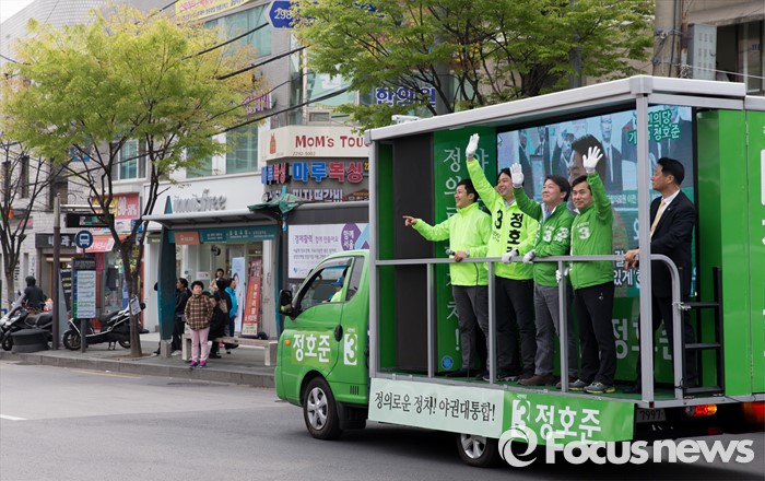 (서울=포커스뉴스) 안철수 국민의당 상임공동대표가 12일 오전 서울 성동구 금장시장 앞에서 서경선 중구성동구갑 후보와 정호준 중구성동구을 후보 지원유세를 하고 있다.