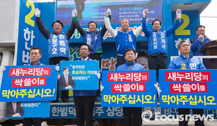 (청주=포커스뉴스) 국회의원 선거를 하루 앞둔 12일 오전 충북 청주 상당구 육거리시장 앞에서 김종인 더불어민주당 대표가 청주지역 후보의 지지를 호소하고 있다.