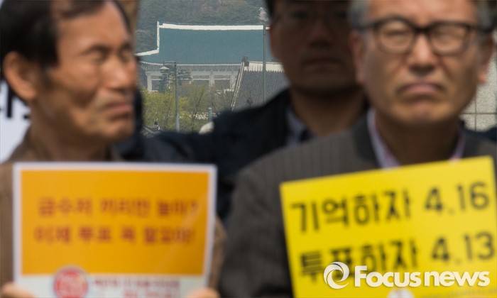 (서울=포커스뉴스) 제20대 국회의원 선거를 하루 앞둔 12일 오전 서울 광화문광장에서 2016 총선시민네트워크 회원들이 총선 투표참여를 호소하는 기자회견을 하고 있다.