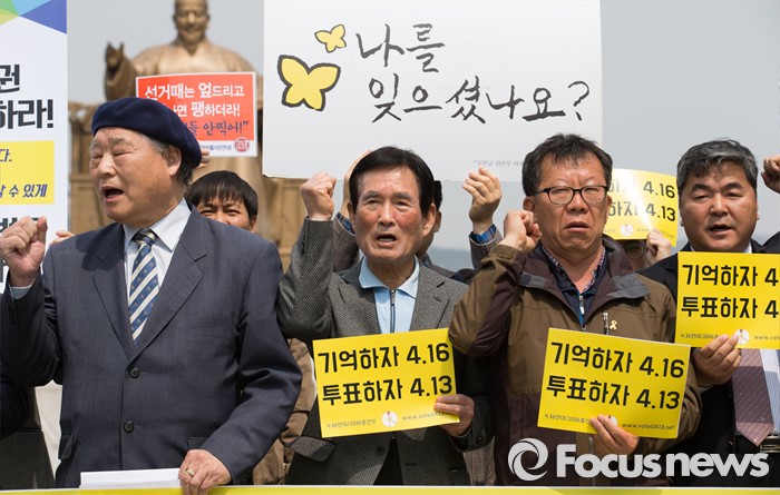 (서울=포커스뉴스) 제20대 국회의원 선거를 하루 앞둔 12일 오전 서울 광화문광장에서 2016 총선시민네트워크 회원들이 총선 투표참여를 호소하는 구호를 외치고 있다.
